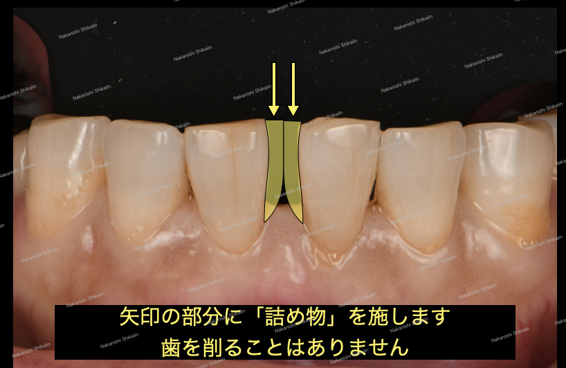 それぞれの歯の片側ずつに詰め物をすることで、隙間を埋める形になります。
