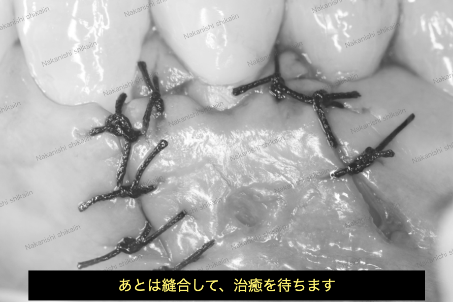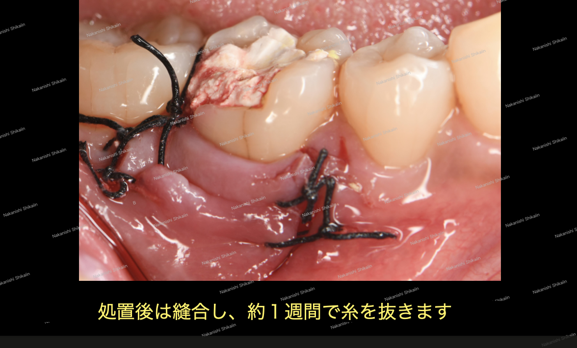 処置後は歯肉を縫合し、1週間程度で抜糸を行います。その後は経過を見ていくのみとなります。