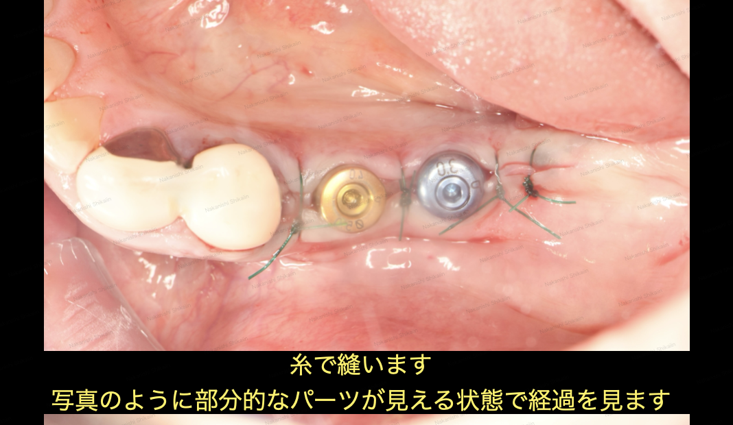 縫合したら、約1週間後に抜糸します。抜糸後は被せ物をしていきます。
