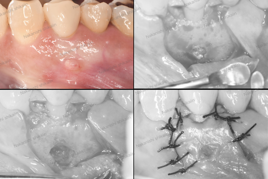 局所麻酔をして、粘膜を切開します。切開は形状にもよりますが、Y字を入れることが多いです。