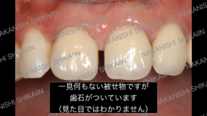よく「歯石とりでレントゲンまで撮るのですか?」と質問がありますが、歯石は歯と歯茎の間、歯茎の中にも存在します。