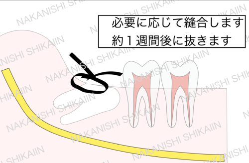 親知らずの抜歯について。残りの歯を抜いて、縫合し、約1週間後に抜きます