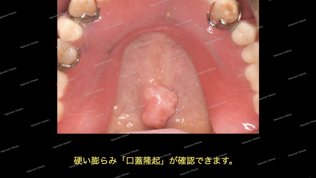 上顎にかたいできもの、口蓋隆起があります。