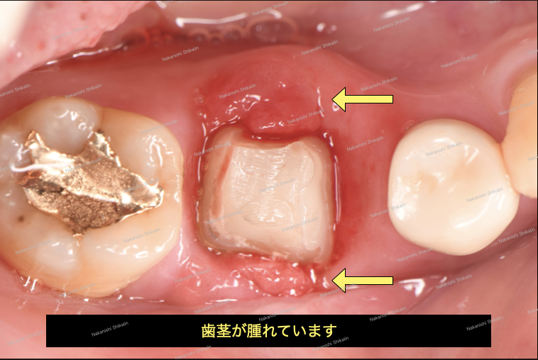 歯を抜く選択肢になる理由は、歯の輪郭が見えておらす、歯茎に覆われていることで、差し歯の「差す部分」「土台部分」が歯にはまらない、被せ物をしたくても歯茎を噛んでしまうからです。麻酔をして無理やり被せ物を捩じ込むことも野蛮ではありますが可能です。ですが、無理やりな治療方法では、被せ物が入ってから歯茎が腫れる、噛むと痛いなどトラブルが多発するため、基本的には行われません。これが抜歯となる理由です。