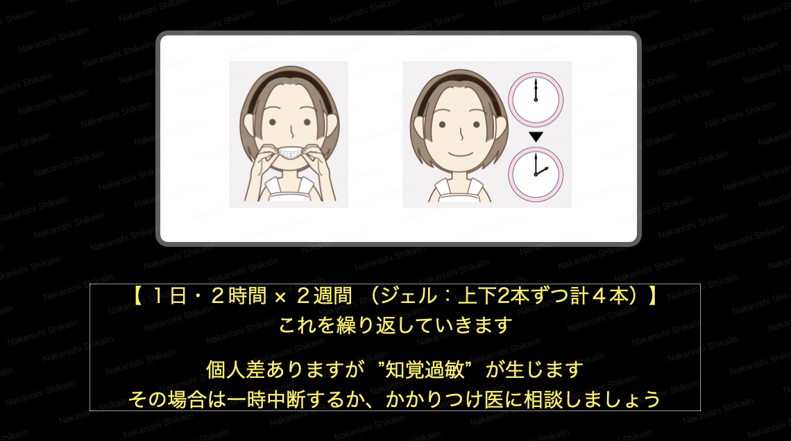 ①2週間ホワイトニング⇨1週間の休憩⇨②2週間ホワイトニング