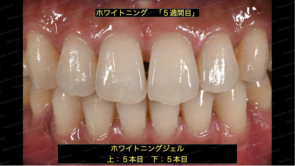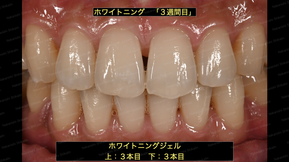 ホームホワイトニングジェルを使用して1週間後です。最初の状態と比べると白くなっています。