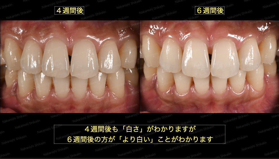 ここまで来ると白さの変化量が自分の目ではわかりにくくなります。ですが、写真で比較すると、間違いなく白くなっているのが見て取れます。4週間後と6週間後の差は言われる確かに白いなと感じるかもしれませんが、最初の状態から比較していくと、間違いなく白くなっていると感じ取れます。