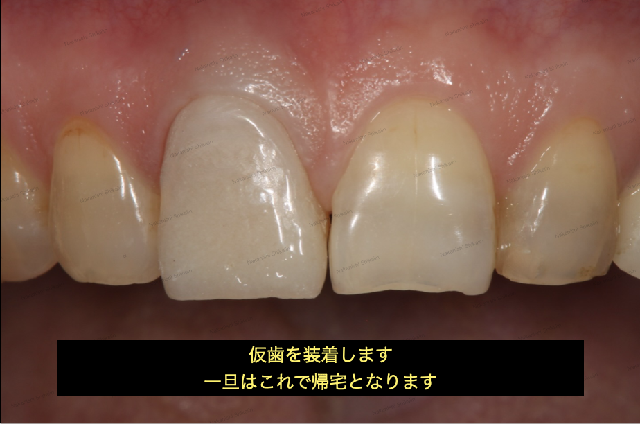 後日、仮歯を理想の形へと修正していきます。理想の形とは、基本的には左右対称としての隣の本物の歯の形に似せていきます。本物の歯と同じ形にすることで、違和感がなくなります。もちろん、患者さんにとっての理想の形がありますので、そのあたりも総合的に考慮し、仮歯を手直しします。