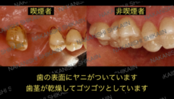 喫煙すると歯の表面に「ヤニ 」がつきますが、その他にも口腔がんの発生率が増加するなど、悪い影響も出てきます。最も身近なものは歯周病への大きなリスクです。