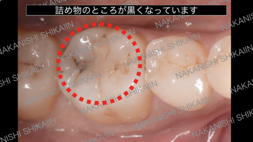 同じ黒さでも、詰め物の周囲の黒さは注意が必要です。見た目は大丈夫そうな黒さでも、詰め物の下で虫歯が進行していることがあります。一度治療をしたところに関しては定期的な検診、確認が必要です。
