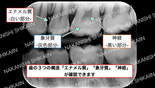 歯は「エナメル質」「象牙質」「神経」と3つの構造になっています。